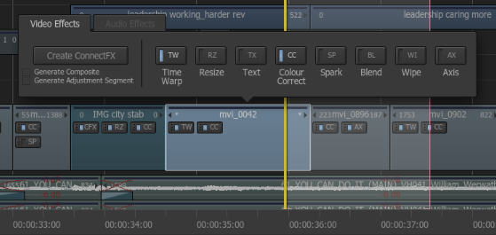 I explained how the MediaHub imports, and how you can organize your footage in the Media Library with it’s hierarchy of Libraries, Folders, and Sub-Folders. The people I talked to liked the Tabbed Timeline workflow and the editorial operations was something they could easily see and were comfortable with. It was when I started to show them how ConnectFX works and how easy it was to add effects to clips in the timeline that they really became interested.