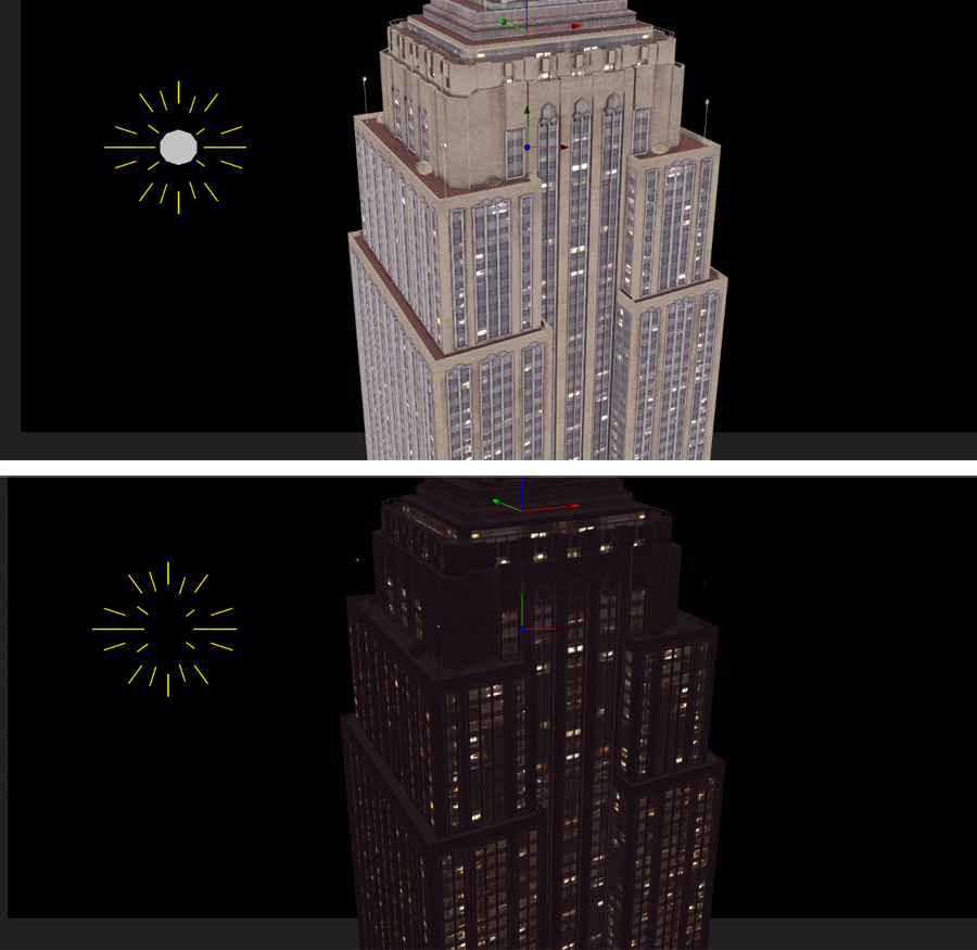 When you set the lights in Smoke to negative intensity the building lights illuminate due to the embedded Emissive and Specular Map Textures.