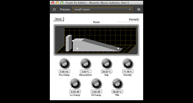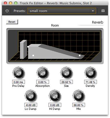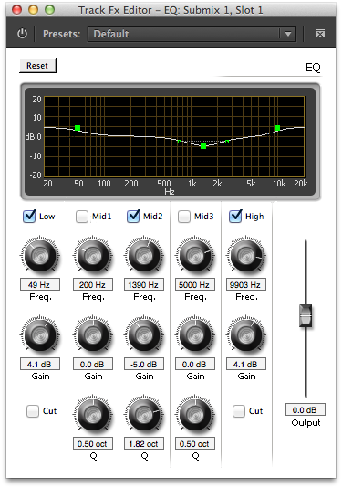 Once you’ve created the submix, all you have to do is change its routing from going to the Master to going to the submix. Track routing can be found right above the pan control. Using this, you can route several music tracks into the same submix, then apply your notched EQ to the submix only once: