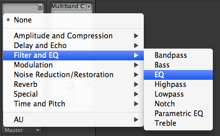 By using the EQ filter on your music track to create a “valley” with those frequencies at the low point, you can have your music be at a good volume, but still be able to easily understand your dialogue.