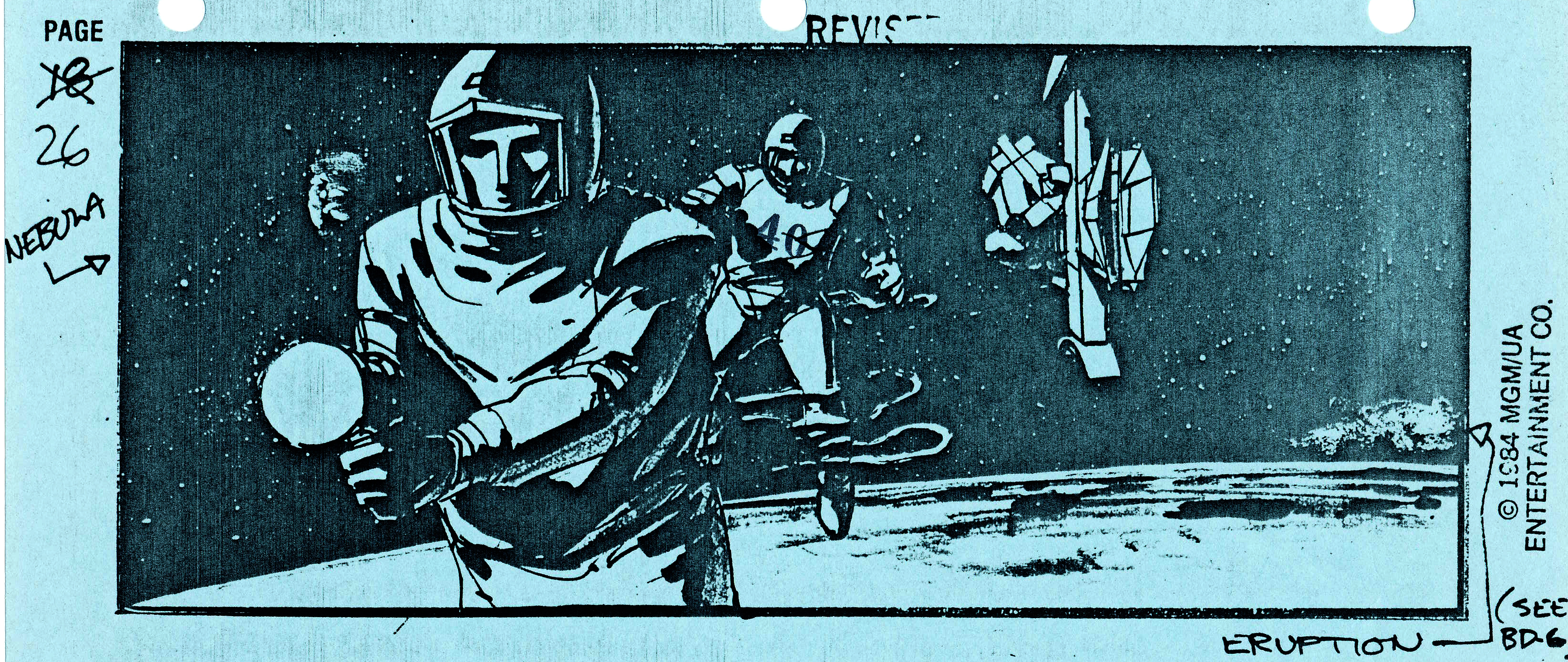 The collage of storyboards above is a good sample of the boards I’ve worked with in my career. In the ’80s, most visual effects companies had in-house art departments that would create storyboards and key frame production paintings that captured the scale, mood, and dramatic intent of a particular scene or moment in the script. Most storyboards in those days represented all of the elements in each shot that could break down into schedule-able and budgetary terms — a visual menu, if you will. Art departments needed a lot of wall space because each board was tacked up, in sequence, for all to see and discuss.