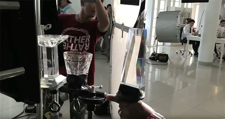 The best thing about working with foreground elements is that they can actually be very inexpensive. You can even pick up the materials at your local dollar store. The items you use include a dinner glass, prisms, or even something as wild as a large plastic spoon. For the commercial I worked on, I just went to a local craft store and found clear crystal beads typically used for jewelry I bought four for under $12, and they worked perfectly.