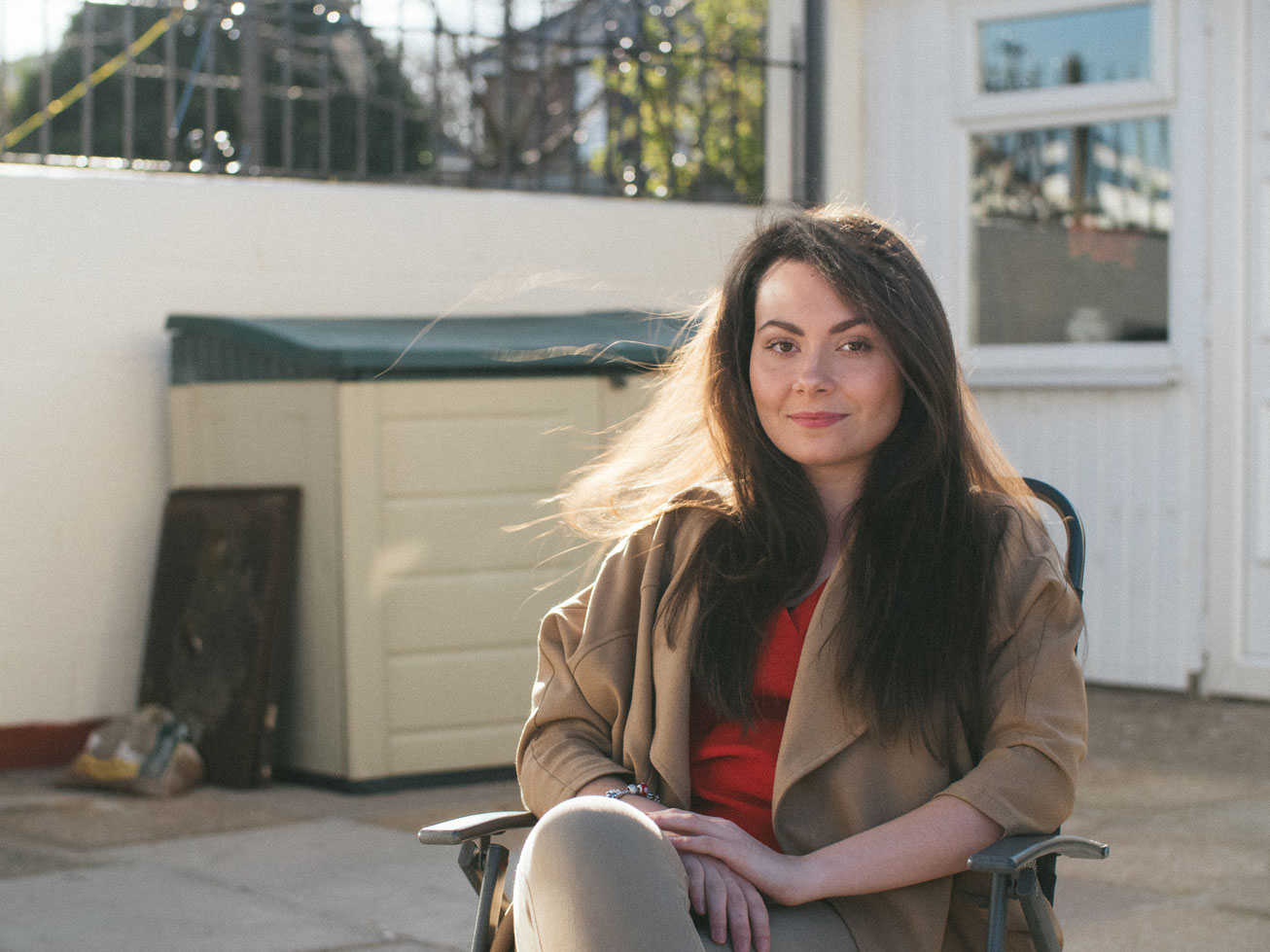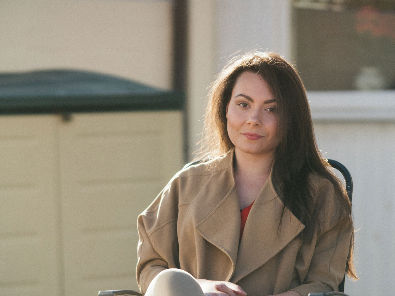 Here are three shots with the same relative framing and subject: A woman sitting in a chair, filling almost two-thirds of the composition.