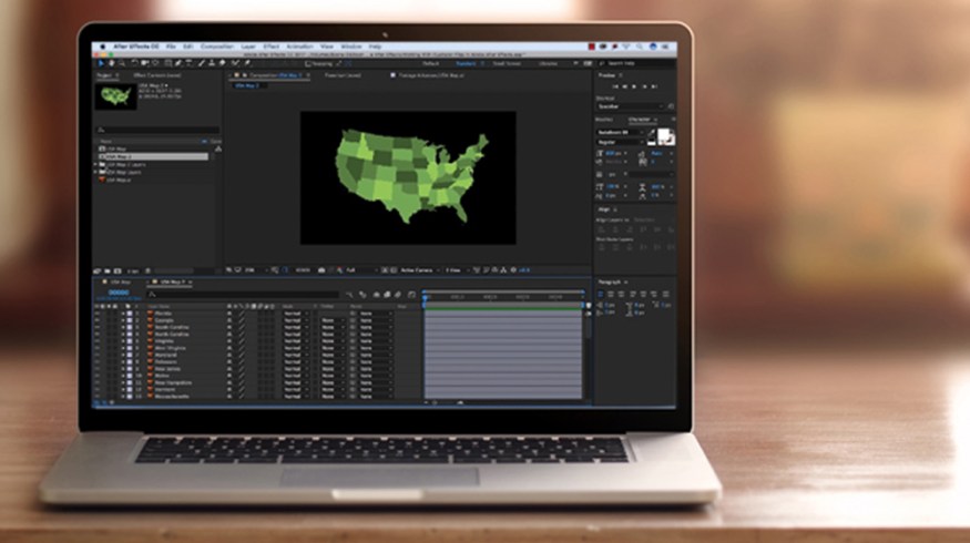 I’m working on a motion graphics project that consists of animating a map of the United States. My client has provided me with a layered EPS vector graphic file of the United States that they want me to use in the animation. They’ve asked me to take this map and create a variety of animations, including an animation for each individual state. Let’s take a look at the file and see how I can work with this file in Adobe After Effects.