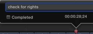 - To nudge a marker one frame at a time to the left: Park on the marker, and press Control + , (comma).